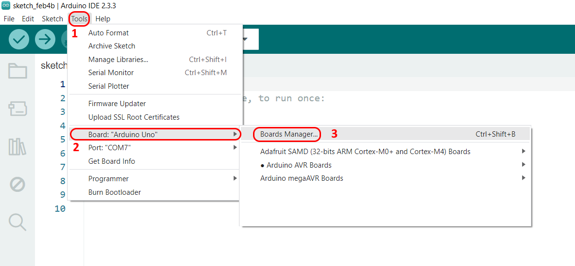 - Klik op Tools > Board > Boards Manager.