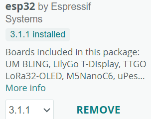 - Installeer “esp32 by Espressif Systems” (Gebruik gewoon de meest recente versie 3.3.7 of hoger!)