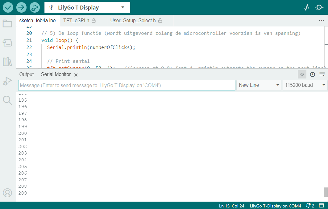 Serial.println(numberOfClicks); //Print naar de terminal