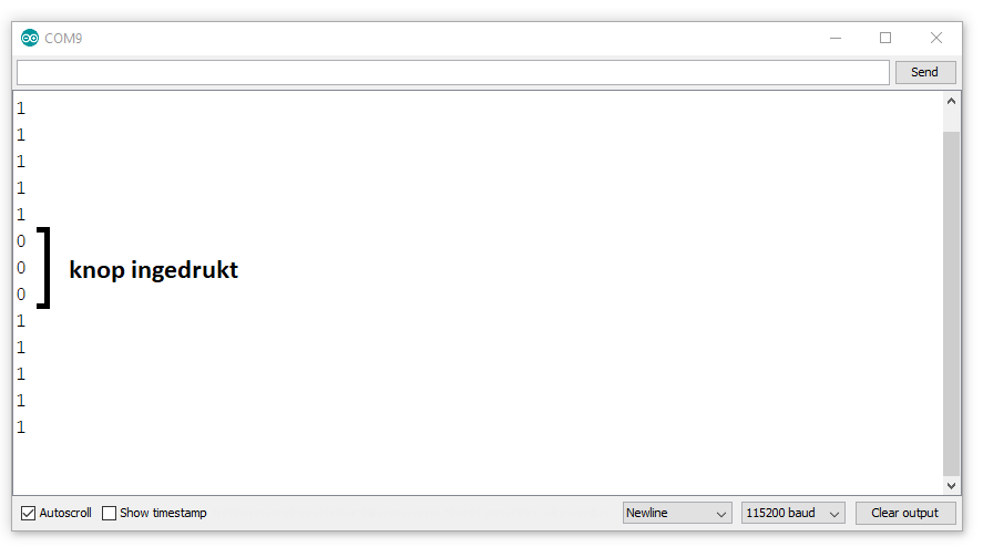 Met behulp van je Serial Monitor kan je makkelijk zien of je knop werkt.