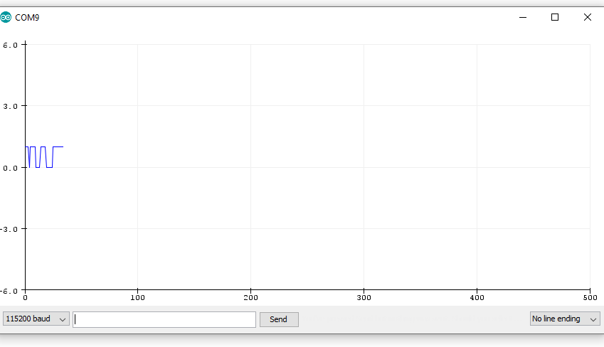 Test ook opnieuw je Serial Plotter. Voeg wat extra delay() toe als de plot niet duidelijk is