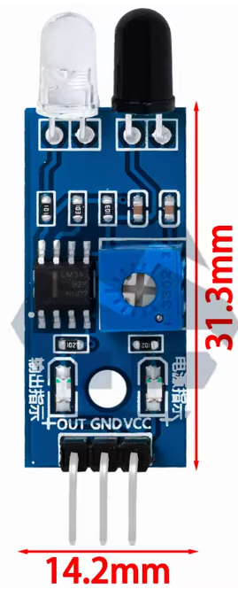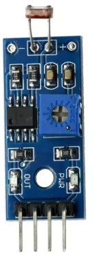 Tip: Je kan deze functionaliteit ook online aankopen, in plaats van zelf aan de slag gaan met potentiometers als trimmer. Een bijkomend voordeel van de onderstaande modules is dat ze vaak beschikken over een opamp schakeling om het analoge signaal van de sensor om te zetten in een digitaal signaal wat je eenvoudig uit kan lezen! De onderstaande modules zijn (van L naar R): Lichtsluis (LED + Detector in U-Vorm, met digitale uitgang), LDR met digitalisatie (Zelf nog zorgen voor lichtbron), IR reflectiesensor (LED+Detector in reflectiemodus)