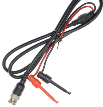 Om signalen van het breadboard uit te lezen, maken we gebruik van BNC naar test-hook kabels. Indien er niet genoeg BNC kabels beschikbaar zijn voor (meerdere) signalen gelijktijdig te debuggen, kan je altijd de seriƫle plotten van de Arduino IDE gebruiken.